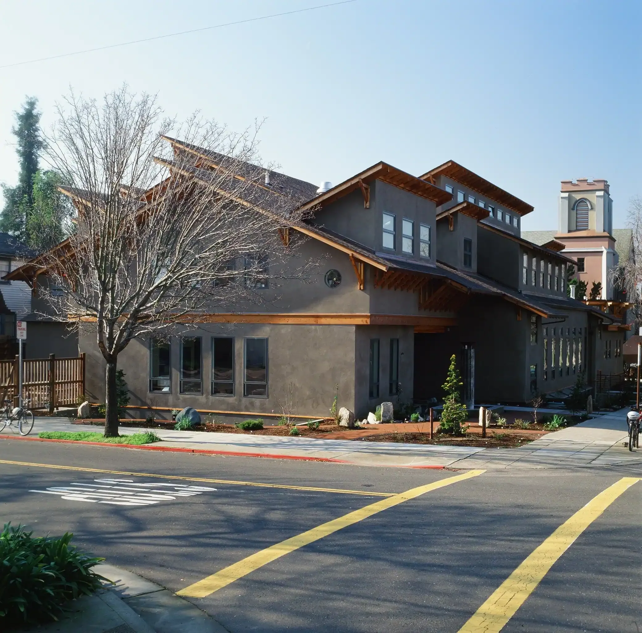 This complex building houses a church social hall and a private school with a gymnasium shared by both church and school. Our challenge was to integrate the needs of the two distinct user groups while maintaining their separate identities. The building also needed to be low in cost, environmentally sound, and inspirational to its users.