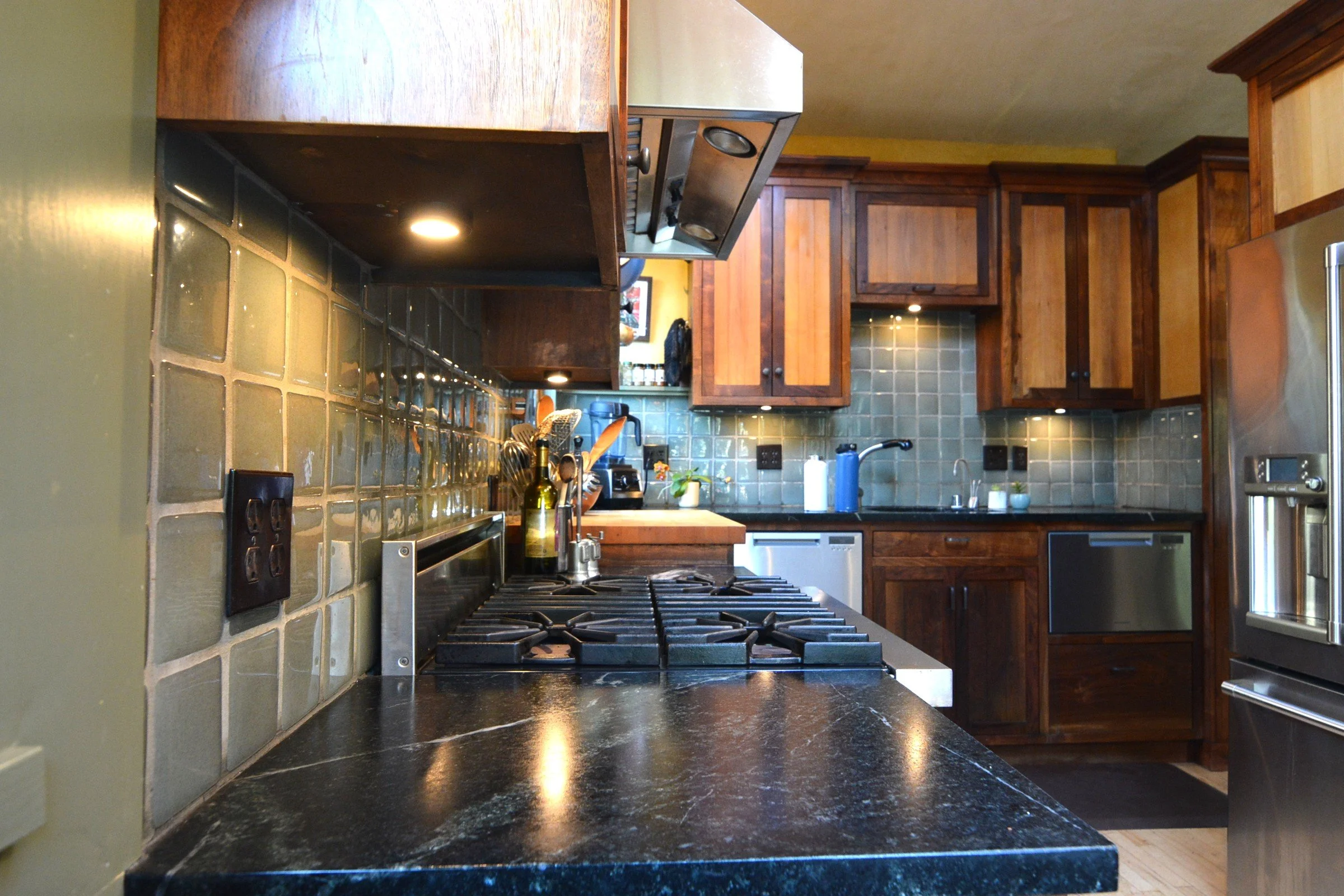 We designed and constructed a second level while fully remodeling this 1930’s Berkeley bungalow into a three bedroom, 2-1/2 bath home. Applying a contemporary bungalow aesthetic, original features and modern updates create a warm and inviting living space. The design features walnut and madrone wood kitchen cabinets, a large front deck and both solar hot water and solar radiant heat as well as a 4KW solar electrical system. A backyard office was designed and built and later remodeled into a studio ADU.